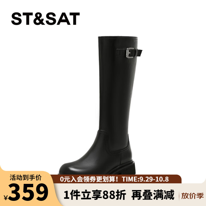 星期六时尚摩登长筒靴2025冬季新款百搭舒适女靴MTSSD4117C89 黑色 38
