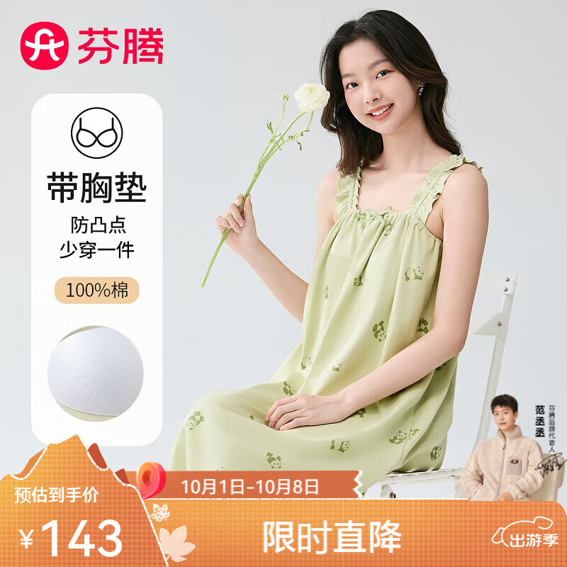 芬腾睡裙【100%棉 带胸垫】25新款纯欲背心少女薄款家居服 浅绿 L