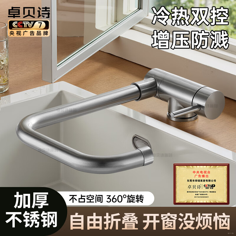 卓贝诗折叠式厨房水龙头内开窗加厚不锈钢冷热增压防溅水洗菜盆水槽龙头 【银色一档】自由折叠丨增压防溅 加厚不锈钢丨赠80cm冷热进水管*2