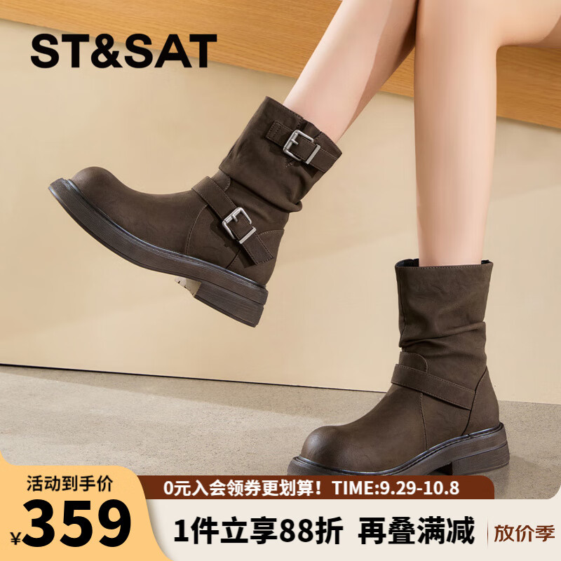 星期六时尚百搭时装靴2025冬季新款舒适潮酷女靴MTSSD4116C7B 卡其色 39