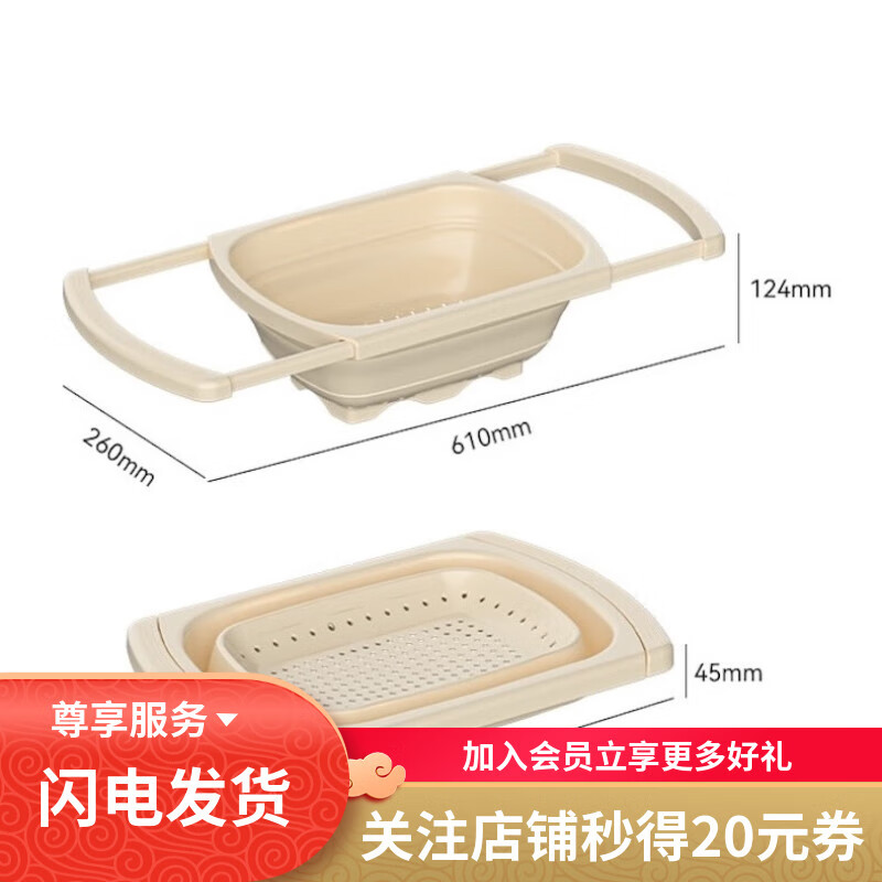 可折叠伸缩洗菜篮厨房洗碗池洗菜篮可挂式洗菜沥水篮洗水果洗菜盆 【1个装】可折叠伸缩洗菜篮-奶白