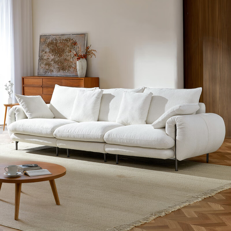 凡创佳品凡创四人位油奶风沙发简约现代中古雪尼尔客厅慵懒可拆洗布艺沙发 尺寸/颜色/面料/可定制 零胶水-雪尼尔