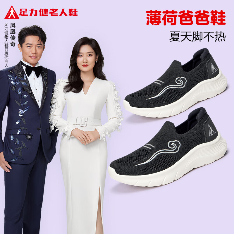 足力健老人鞋轻便软弹柔顺休闲舒适送长辈男女士一脚蹬休闲鞋 黑色-男款 38