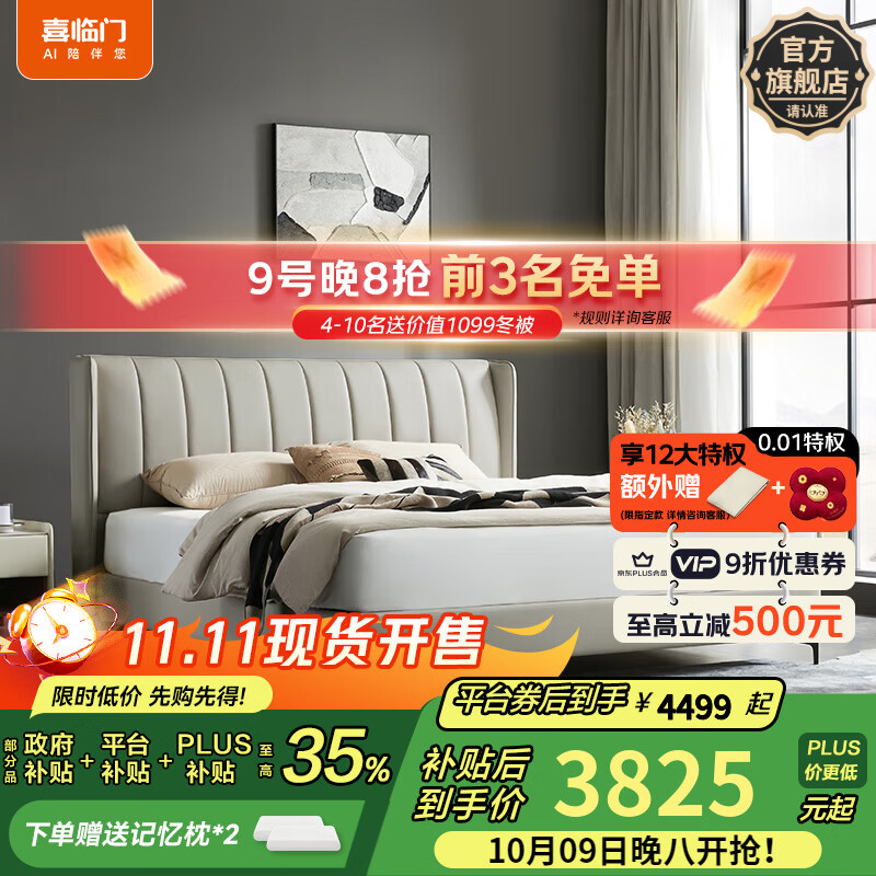 喜临门真皮大双人床现代简约可选多功能储物家具主卧维森[床架] 高脚款-象牙白+白骑士喜礼床垫 1.8*2米