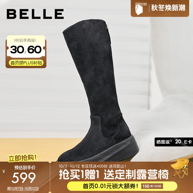 百丽(Belle)复古厚底骑士弹力靴女2025冬新厚底增高显瘦弹力高靴B2822DG5预售 黑色 37