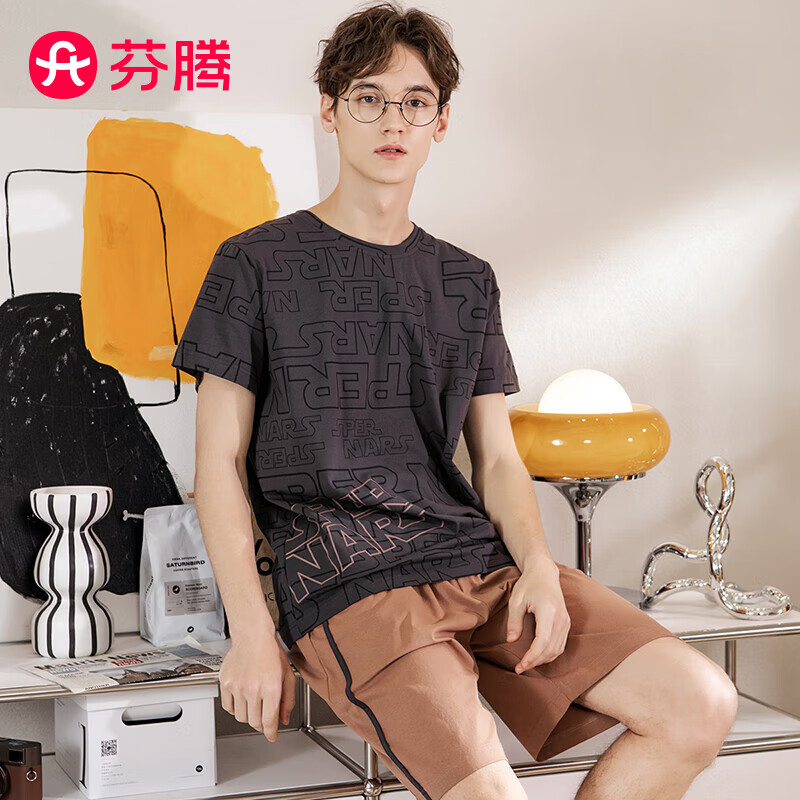 芬腾睡衣男新品纯棉套头圆领休闲家居服睡衣 复古灰 XL