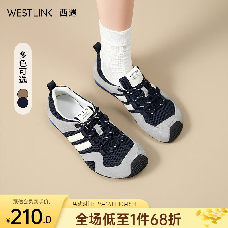 西遇德训鞋女2025新款秋季超火复古平底歪头运动鞋轻便软底休闲鞋 蓝色 36 (230)