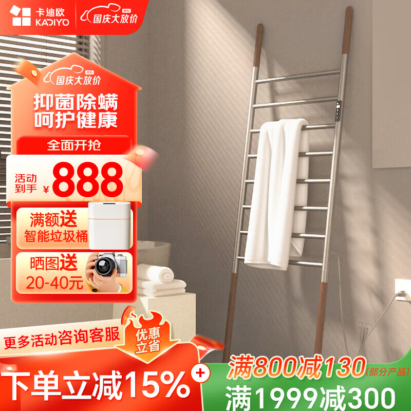 卡迪欧落地智能电热毛巾架卫生间家用加热浴巾架子发热烘干架免打孔安装 150*55cm拉丝明左右通用触屏+APP 【免安装-已接入米家APP】