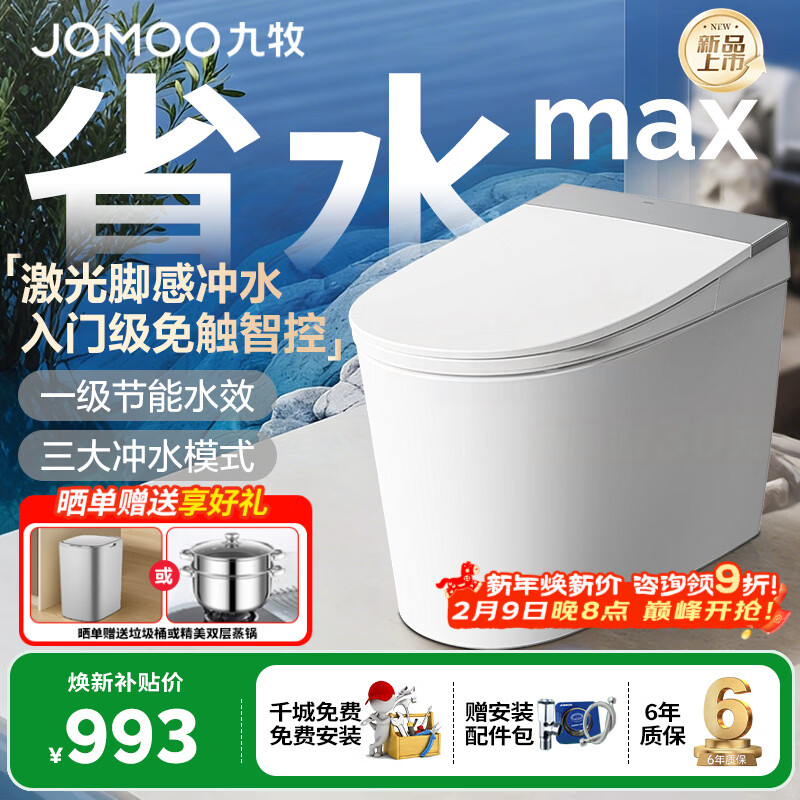 九牧(JOMOO)轻智能马桶座圈加热脚感冲水久坐提醒虹吸坐便器一级水效5342升级 【26年新品脚感免触冲+久坐提醒】SQ5352 305坑距【290-390以内选择】
