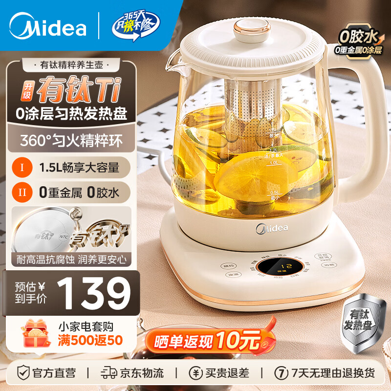 美的(Midea)有钛养生壶母婴级316L不锈钢 加大滤网花茶壶煮茶器 家用大容量恒温电热水壶可煮小米 1.5L 新升级有钛发热盘