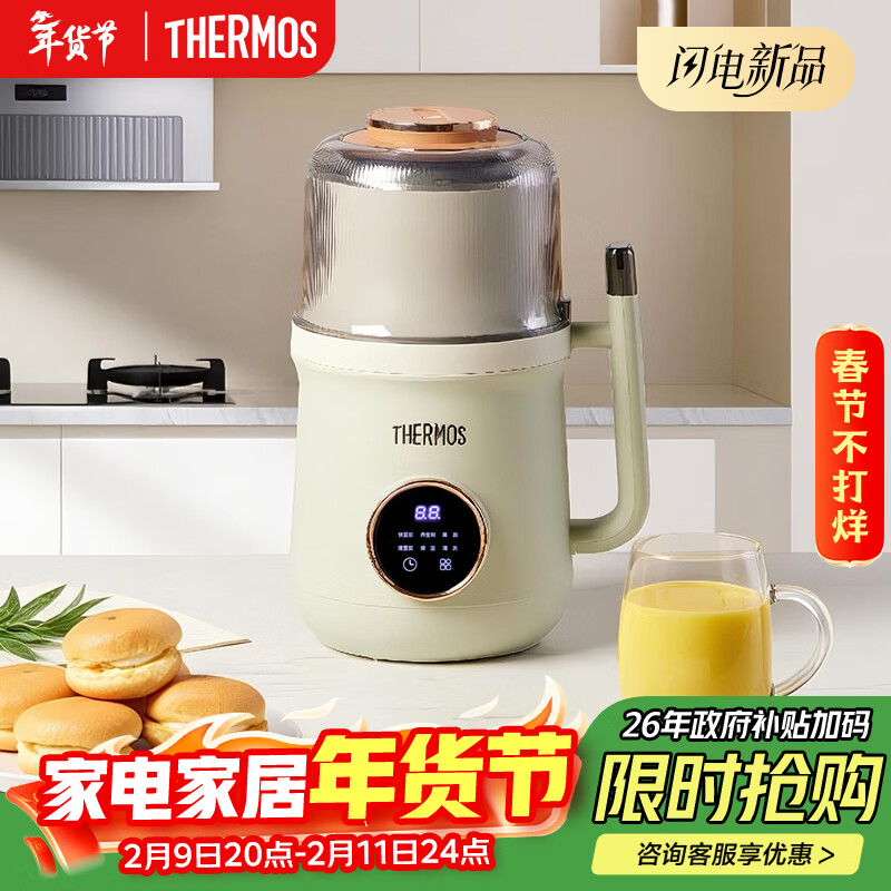 膳魔师(THERMOS)豆浆机全自动免煮小型1人-2人免过滤免手洗轻音破壁机家用2025年新款降噪低音大容量多功能料理机 【薄荷绿】细腻无渣 0.8L