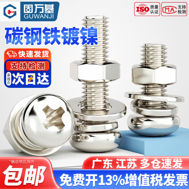 固万基(GUWANJI)镀镍十字圆头螺丝螺母组合带平弹垫圈盘头螺钉螺栓套装M2M3M4M5M6 M2x2头3.5[200套]