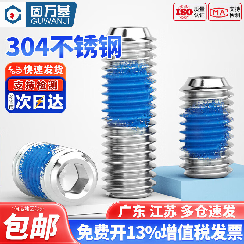 固万基(GUWANJI)304不锈钢无头内六角点胶凹端紧定机米涂蓝胶螺丝钉防松防滑顶丝 M2.5x4(50只)