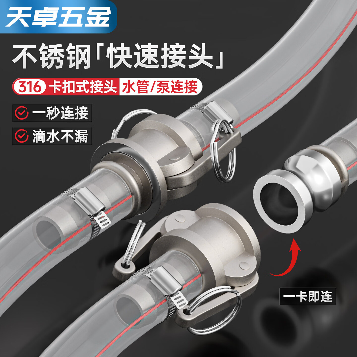 天卓五金316不锈钢快速接头卡扣式活接4/6分1/2/3寸水泵水管接头大全 A型 DN15/4分【1个】316