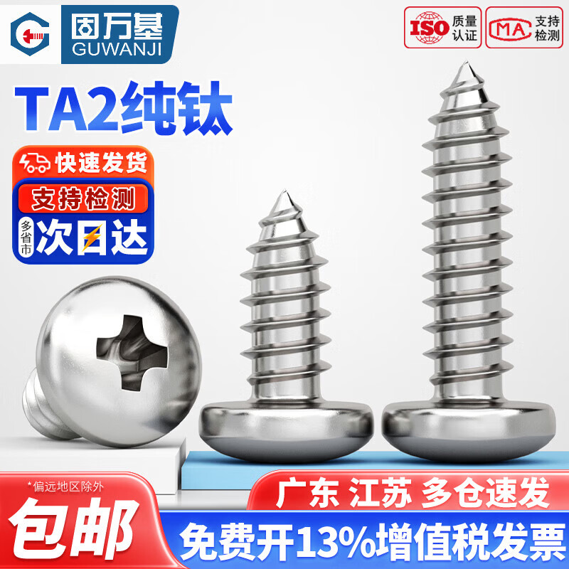 固万基(GUWANJI)国标TA2纯钛圆头十字自攻螺丝钛合金加长盘头电子螺钉M3M4M5M6 M3x6(5只)