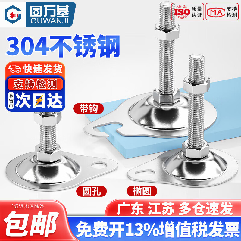 固万基(GUWANJI)304不锈钢脚杯平底带孔固定地脚带钩底座带耳朵支撑脚M8M10M12M16 带钩-M8x60[1套]