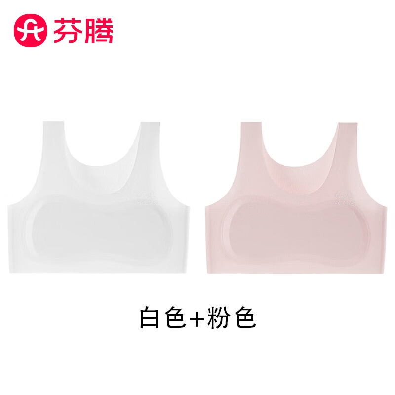 芬腾发育期透气无痕儿童少女文胸背心学生内衣轻薄透气一二阶段8-12岁 白色+粉色 XL (80-120斤)