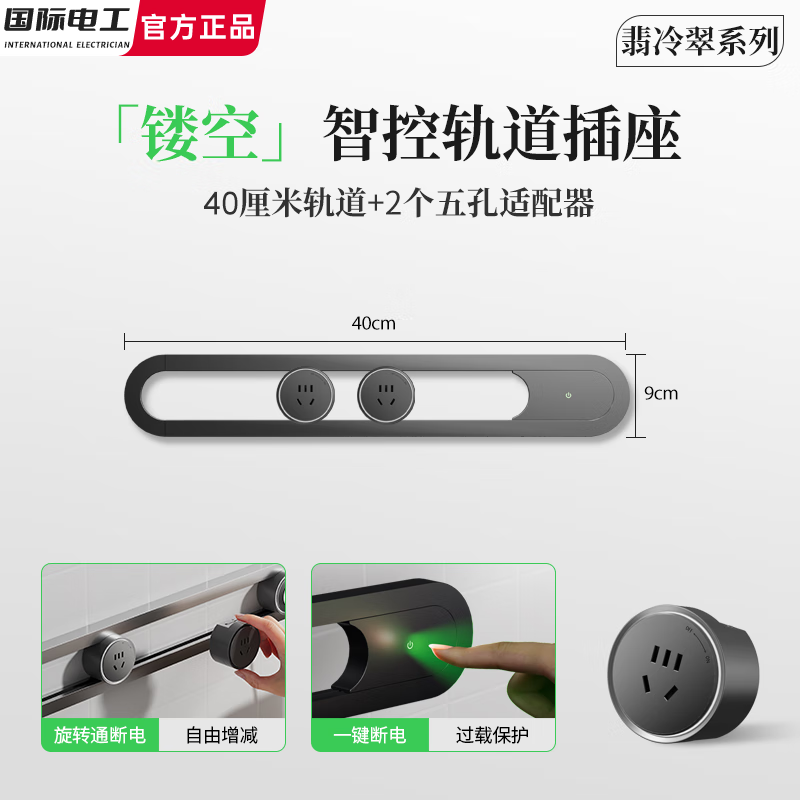 国际电工轨道插座翡冷翠系列镂空设计防过载可移动明装滑轨餐厨导轨式插座 镂空艺术款【40厘米轨道+2个五孔】