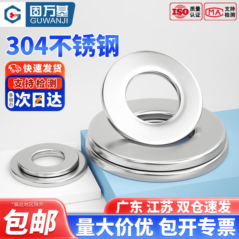 固万基304不锈钢垫片圆形加大加厚金属螺丝GB97介子华司超薄平垫圈M2-M8 M6x20x2[50粒]
