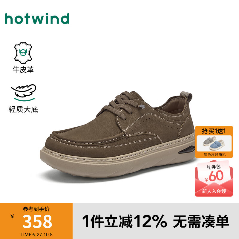热风男鞋2025年秋季新款男士时尚单鞋复古休闲皮鞋百搭厚底鞋子 07绿色 牛头层皮革 43