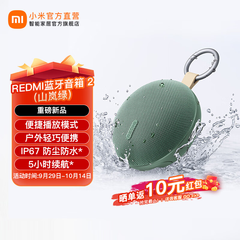 小米REDMI 蓝牙音箱2 橙色 小米音箱音响 长续航 IP67防尘防水 户外便携插卡 音响低音炮 礼物 家用 REDMI蓝牙音箱 2(山岚绿)