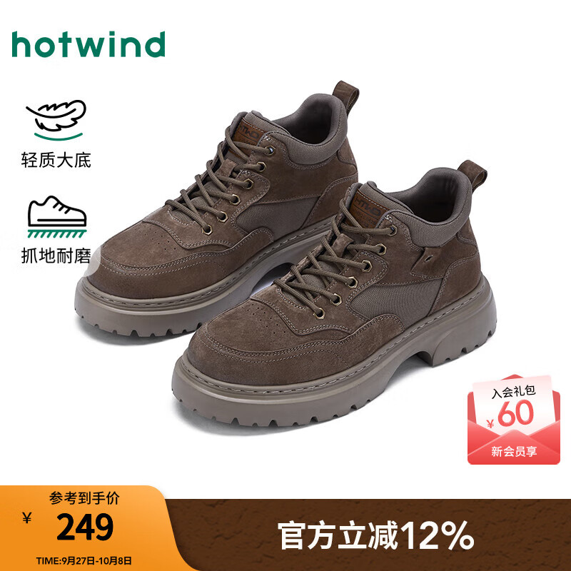 热风男鞋2025年秋季新款男士厚底休闲鞋子百搭舒适马丁靴短筒靴子 129卡其 39