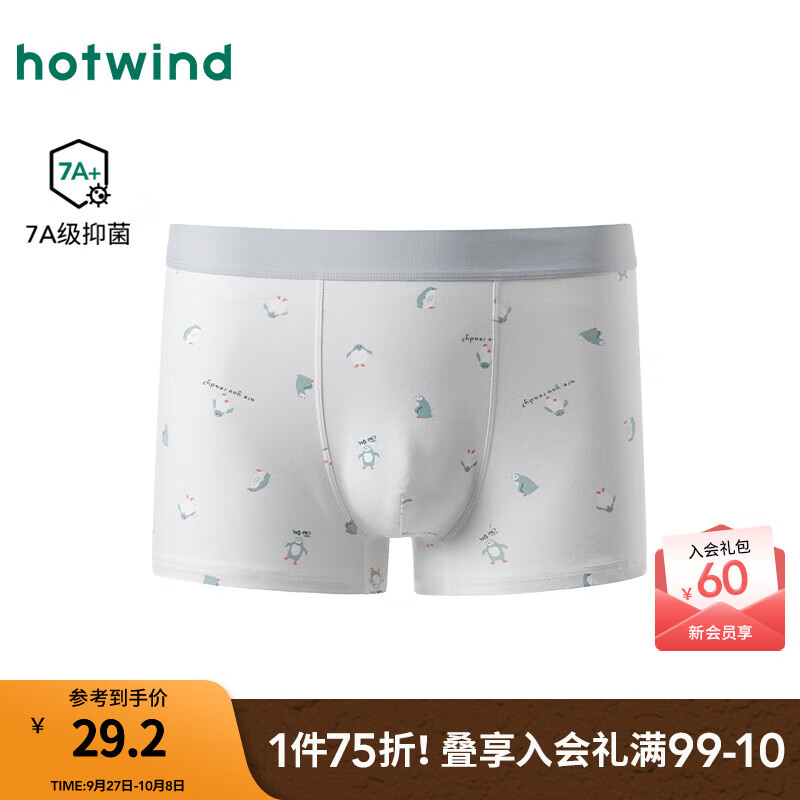 热风【商场同款】男士内裤2025年秋新款小企鹅棉氨抑菌亲肤平角内裤 31浅绿 M