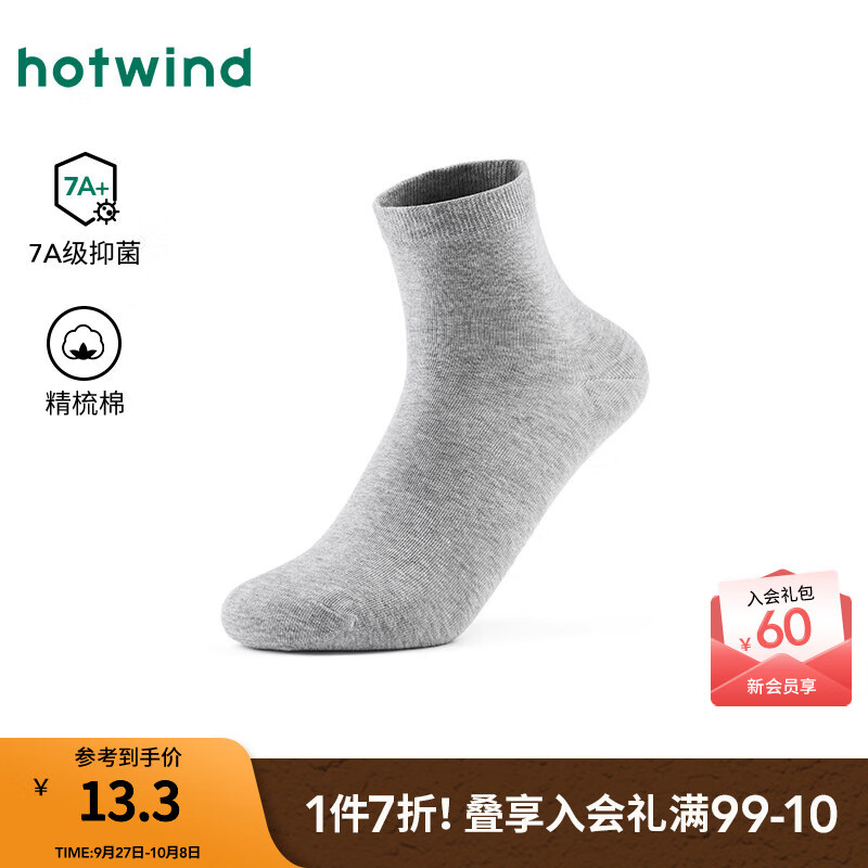 热风【商场同款】男士短袜2025年秋新款低帮精梳棉袜舒适无骨缝线袜 60浅灰 1双 均码