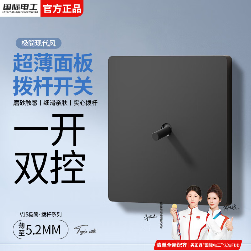 国际电工86型超薄拨杆开关插座面板家用墙壁暗装五孔双控USB电源电脑直插 直拨杆【一开双控】