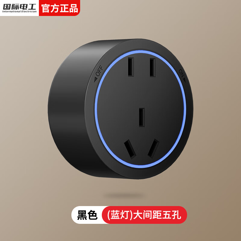 国际电工滑动轨道插座可移动电力大间距五孔插座带LED氛围灯USB适配器 黑色-大间距五孔【环形灯款】
