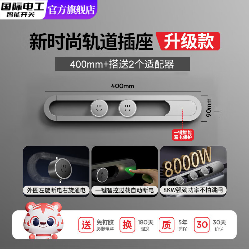 国际电工移动过载保护轨道插座镂空智控大功率厨房餐边柜明装漏电保护开关 漏电/过载保护【40cm+2个五孔】太空银