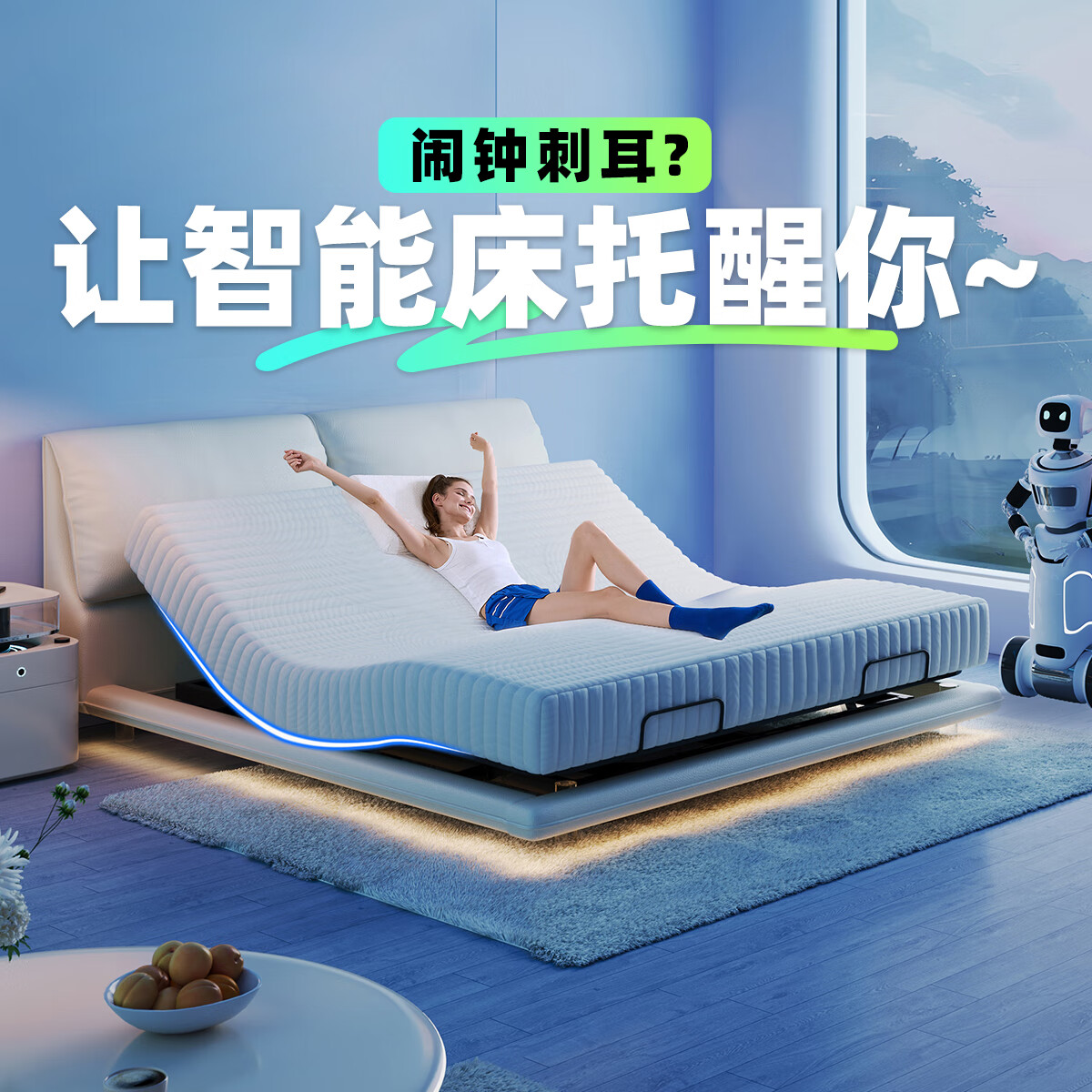 KELISITING多功能真皮智能电动床大象耳朵悬浮床现代简约双人奶油风主卧床 可蚁K1/智控/整体+零压床垫 1800*2000mm