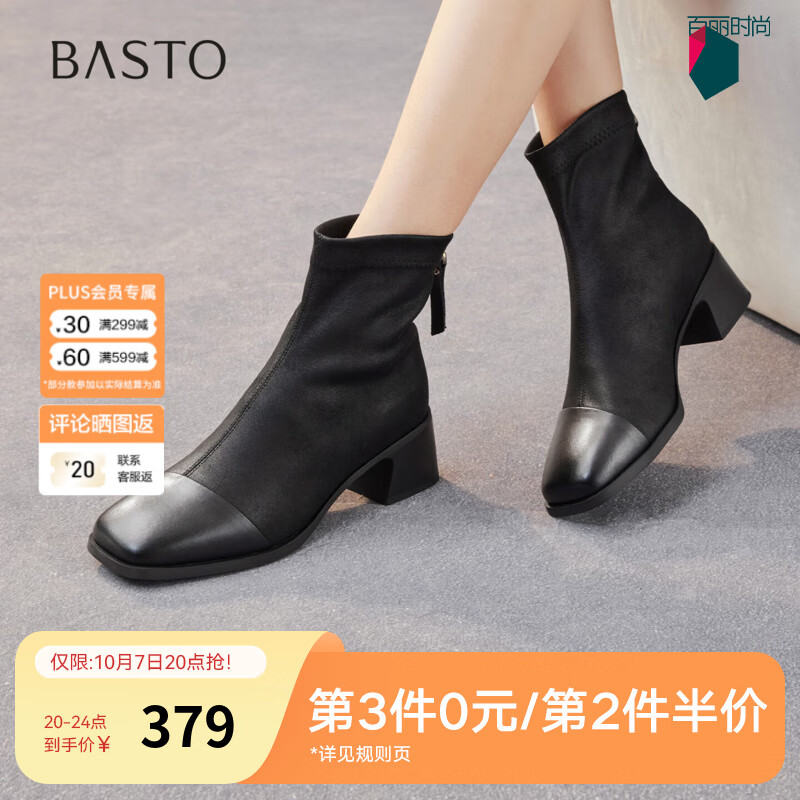 百思图2025冬季新款商场同款时装靴时尚简约方头女短靴O3957DD5 黑色宽版 39