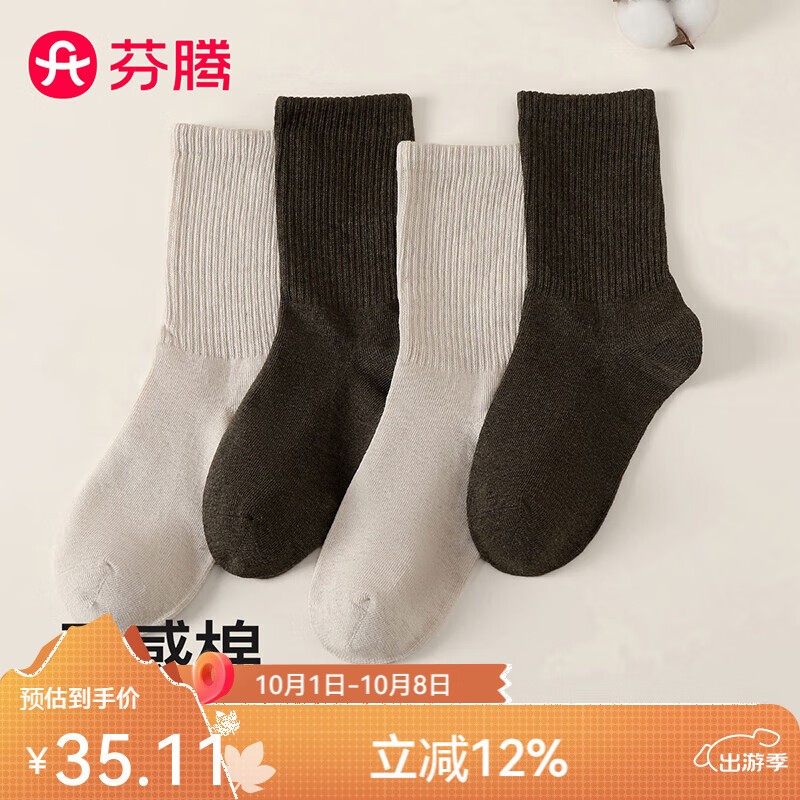 芬腾袜子女2025【云感新疆棉】4双装女士纯色中筒袜无骨女袜百搭透气 米杏/米杏/咖啡/咖啡 4双 均码