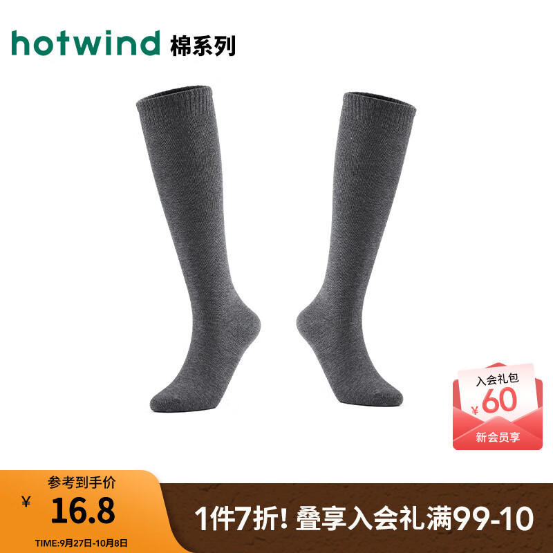 热风【商场同款】女士高帮袜2025年秋季新款基础miu系小腿袜长筒袜 52深灰 1双 均码