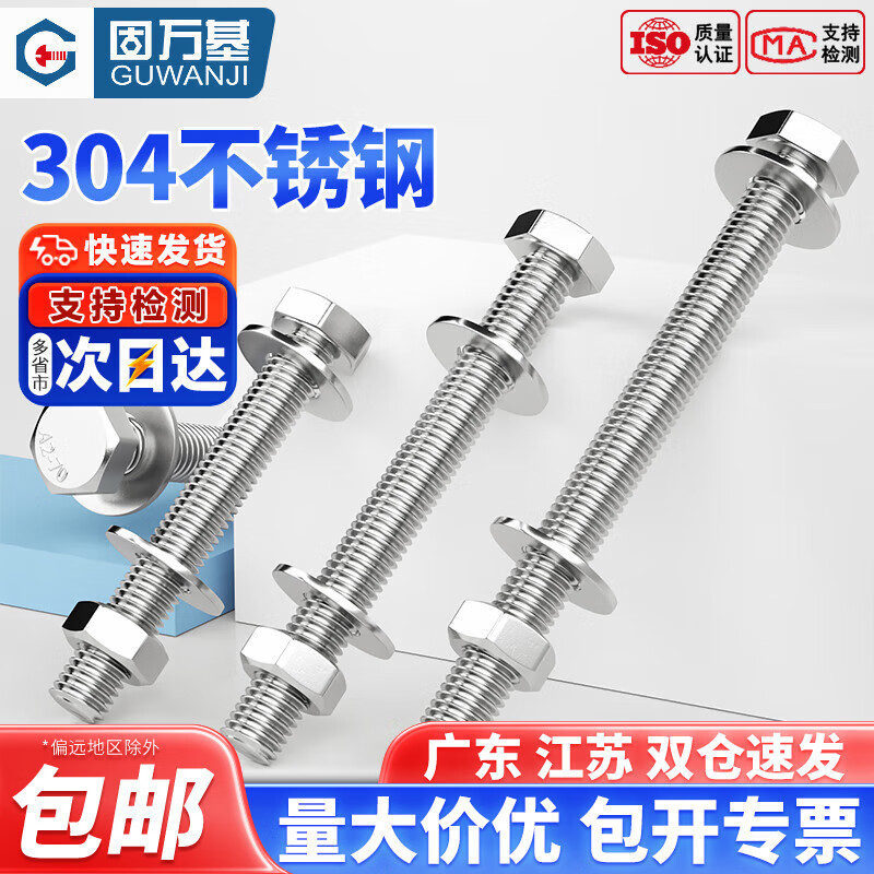 固万基304不锈钢外六角螺栓穿墙螺丝杆螺母套装大全加长螺杆M6M8M10-M27 M6*50【5套】
