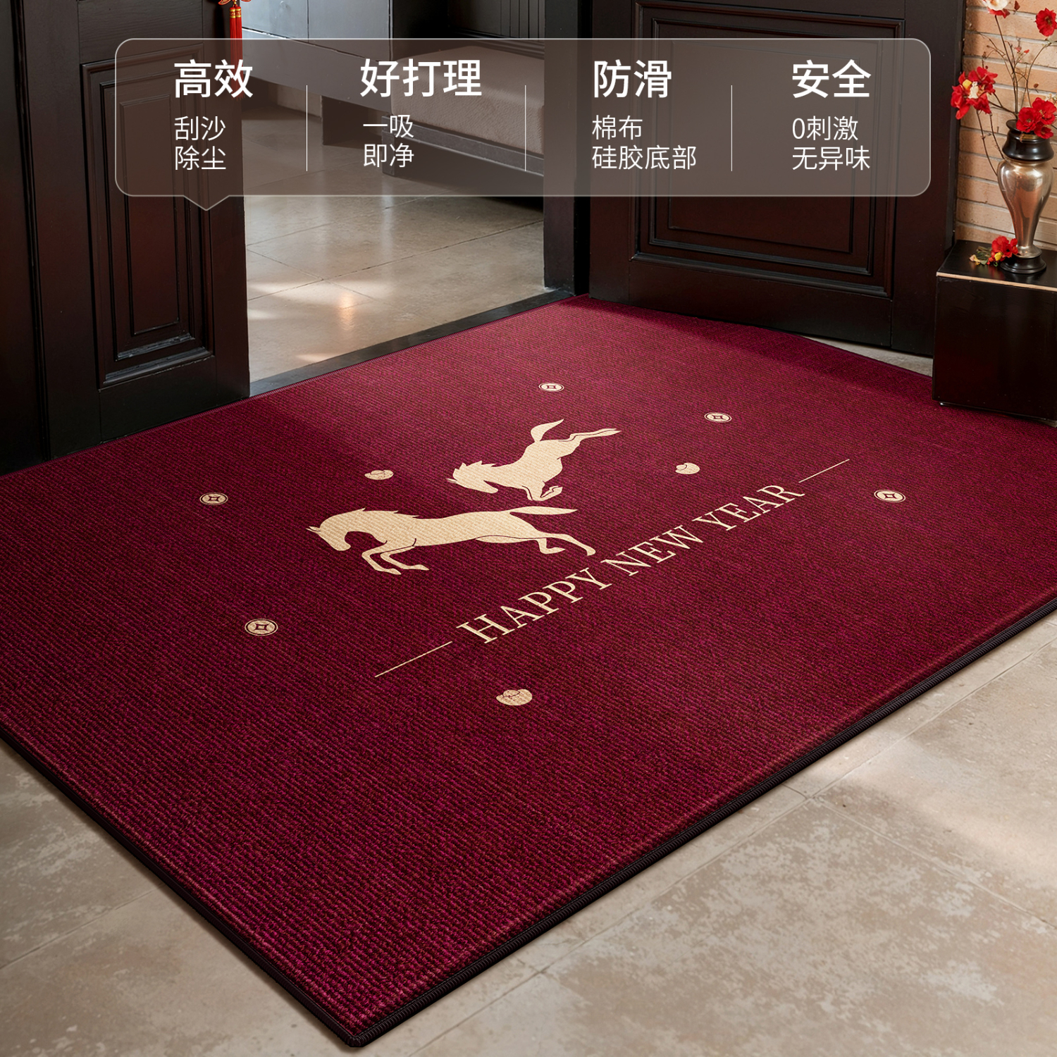 Y U-LIVE入户门地垫2026年新款马年防滑进门门口新年喜庆红色玄关耐脏 圈绒棉布-金马运财 定制请联系客服【享优惠】