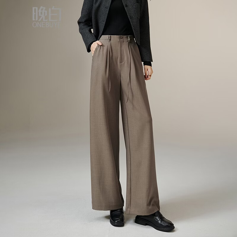 晚白【新品】2026年春款经典高腰裤子垂顺利落遮胯显瘦系带阔腿裤女 深卡其 28
