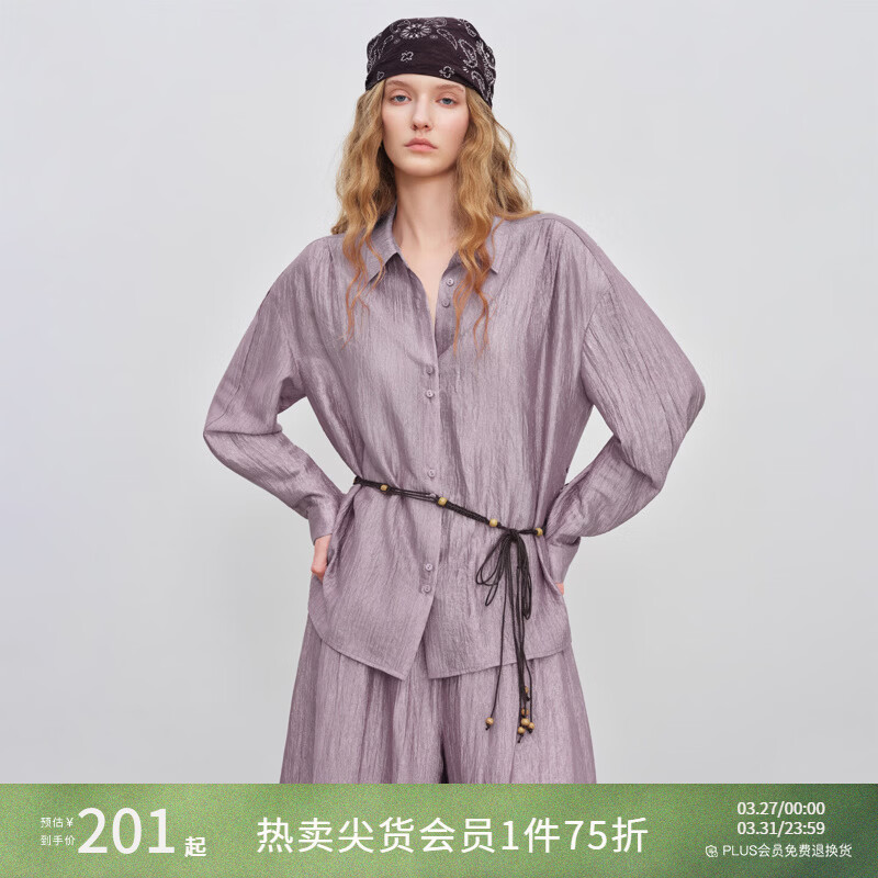 自巧【柔谧假日】小个子醋纤光泽感衬衫&裙裤套装女2026春季新品 流光紫衬衫 M (尺码:4)