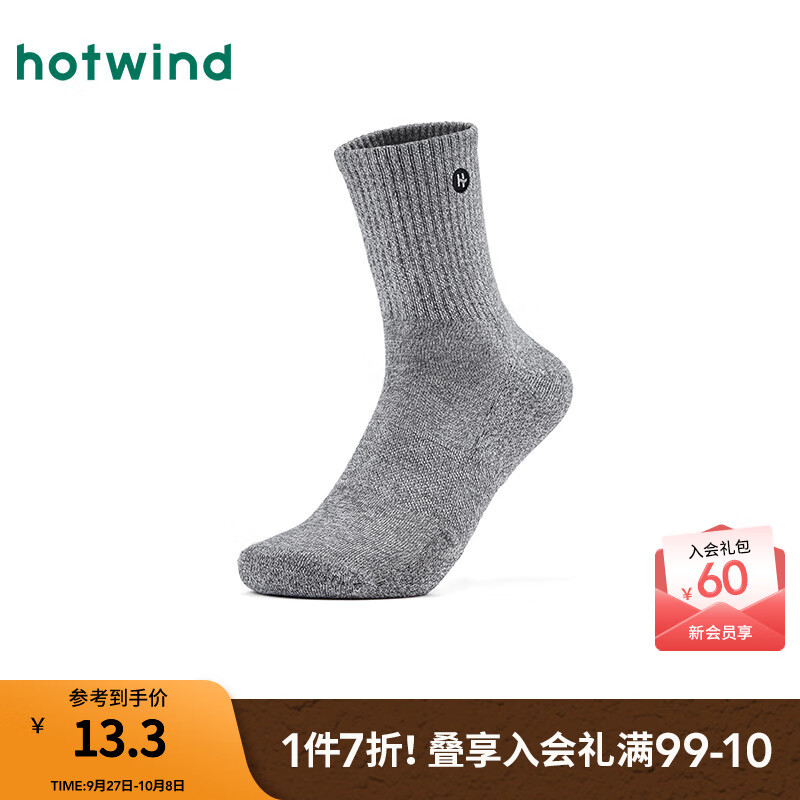 热风(Hotwind)【商场同款】男袜2025年秋季新款男士小标刺绣中帮袜亲肤男袜子 09灰色 1双 均码