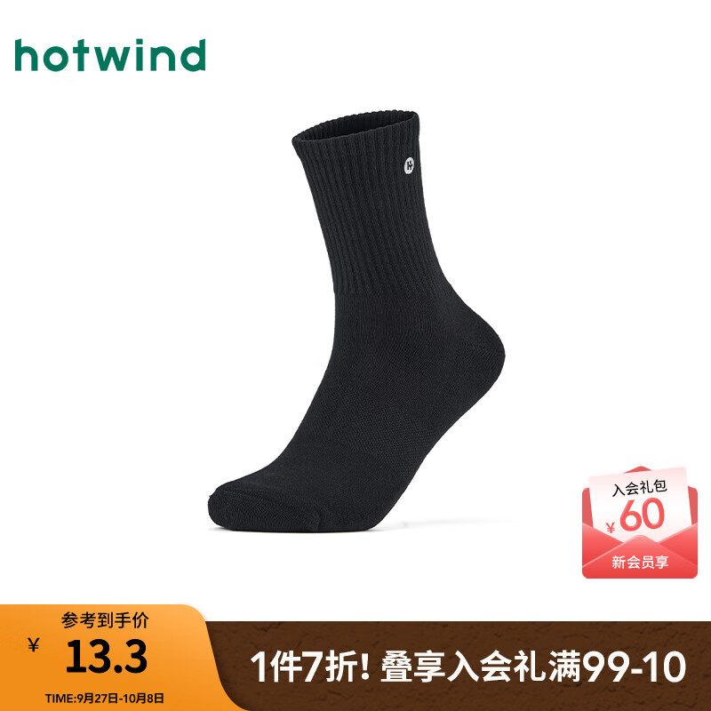 热风(Hotwind)【商场同款】男袜2025年秋季新款男士小标刺绣中帮袜亲肤男袜子 01黑色 1双 均码
