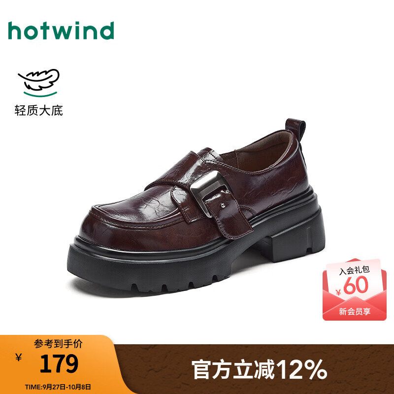 热风厚底乐福鞋女款2025年秋季新款百搭魔术贴小皮鞋小个子增高女单鞋 02棕色 36