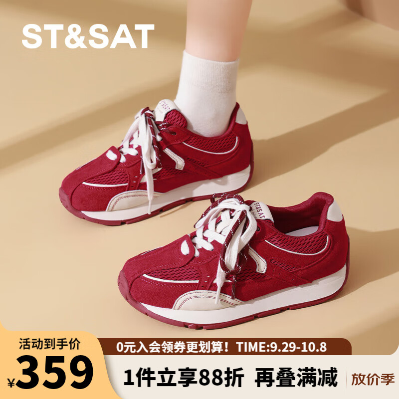 星期六时尚圆头轻便阿甘鞋2025秋季新款多巴胺配色休闲女鞋MTSSD3112CB3 红色 35