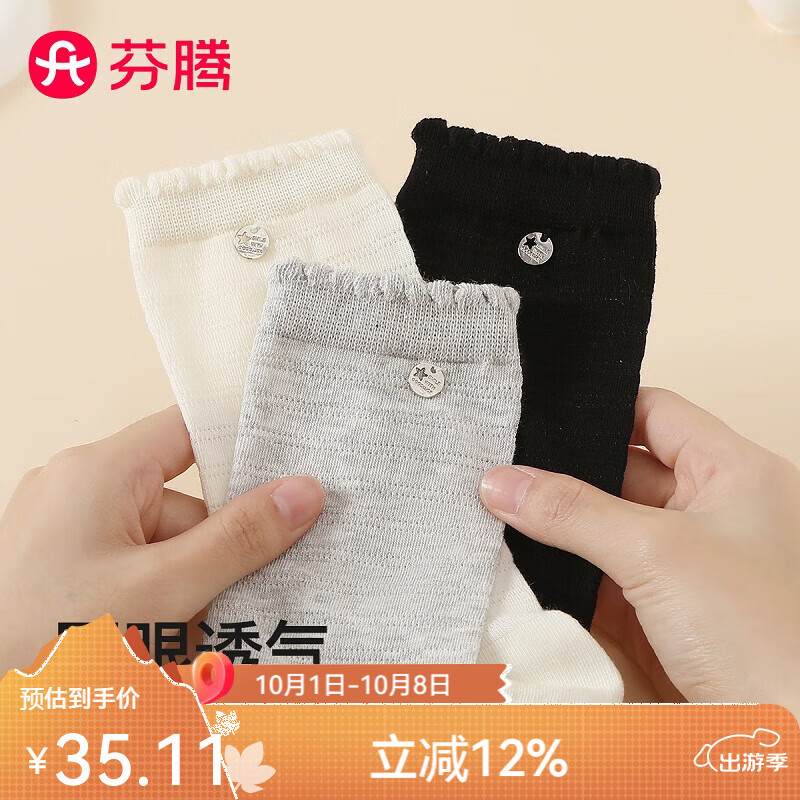 芬腾袜子女新疆棉2025新款3双装长筒袜纯色百搭女士ins风透气亲肤棉袜 黑色/白色/花灰 3双 均码