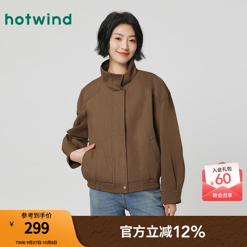 热风(Hotwind)女士短外套2025年秋季新款女士仿麂皮绒复古立领休闲夹克 02棕色 XL