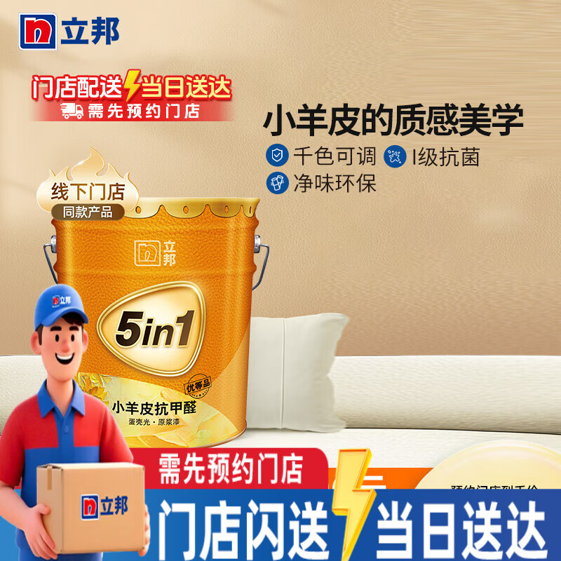 立邦【同城购】竹炭抗甲醛五合一小羊皮效果漆B4内墙乳胶漆油漆涂料 【门店产品需先预约】 15L单桶