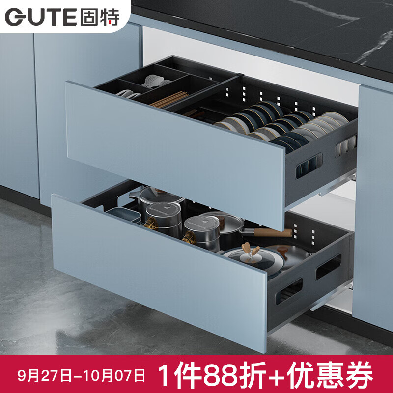 固特(GUTE)拉篮厨房橱柜抽屉式不锈钢厨房拉篮碗碟碗架碗柜调味拉篮 双层星空灰【600柜】不锈钢