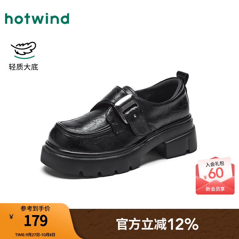 热风厚底乐福鞋女款2025年秋季新款百搭魔术贴小皮鞋小个子增高女单鞋 01黑色 36