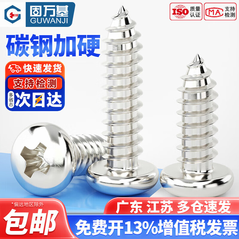 固万基(GUWANJI)PA 加硬碳钢镀镍十字圆头自攻螺丝铁盘头小螺钉头M1M1.2M2M3M4mm M1.7x4 头3.2[1000只]