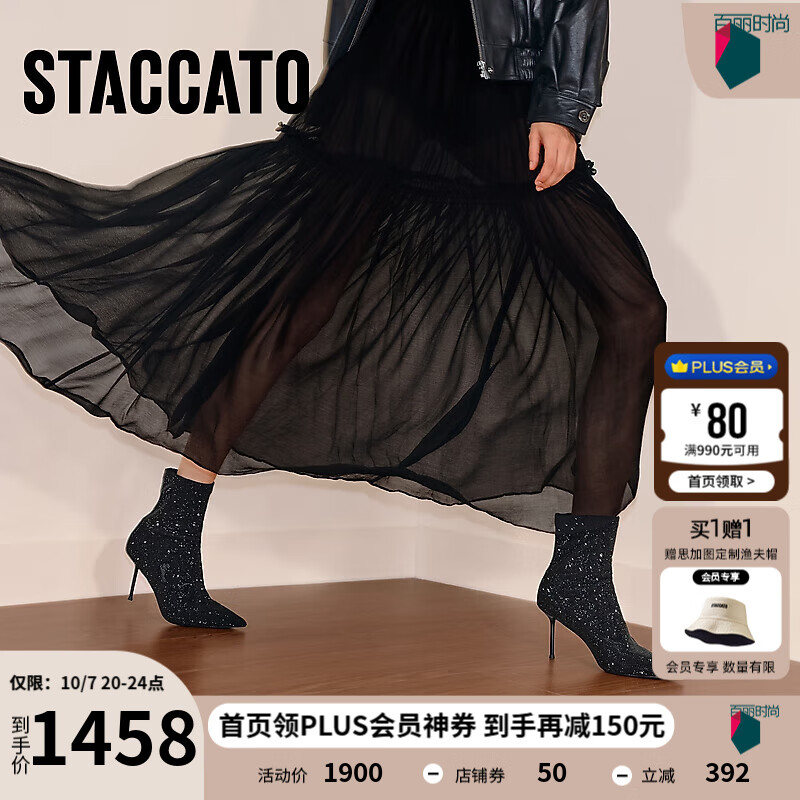 思加图2025冬季新款气质时装靴弹力靴中靴高跟鞋优雅女靴H8025DZ5 夜空黑 37